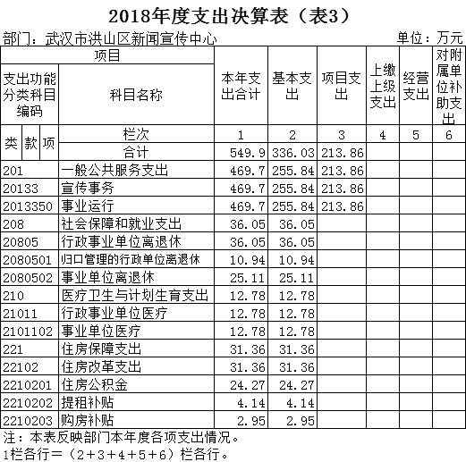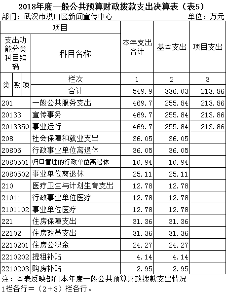 其中:基本支出336万元,项目支出214万元。项目支出主要用于黄色网址六楼办公用房改造37万元,主要成效是为职工提供良好的办公环境;劳务支出2万元,主要成效是中心的法律咨询,为工作中的法律法规提供了专业的支撑;《洪山宣传》专用经费86万元,主要成效是全年在中央、省、市级媒体用稿320余条,圆满完成区委、区政府主要领导调研活动报道60余次,全年“洪山大学之城”微信公众号共计发布全区工作成效新闻750余条,高质量编印《洪山宣传》46期,组建“大学之城编辑部”,宣传工作提档升级;设备维修费5万元,主要成效是保证新闻设备和各类办公设备正常使用;舆情监控20万元,主要成效是全年共监测、研判、处置涉及我区的各类负面舆情信息5000余条,下达舆情处置单36份,向市委宣传部直接上报涉武汉市社会舆情信息200余条,全年未发生一起重大敏感舆情;洪山网站维护13万元,主要成效是加强辖区的网络宣传,以及中心网络的正常运维;视频外拍及制作费20万元,在《长江日报》进行的“洪山实干派图鉴”(全年共计34期)和“改革开放40年·洪山家庭印记”;军运会VR拍摄,有力宣传了我区各项事业的改革发展成效;新闻设备购置4万元,主要成效是便于采访工作开展打造设备的基础条件;物业管理费10万元,主要成效是良好的办公场所和管理次序;文明创建工作经费1万元,主要成效是丰富职工开展文明创建的工作;后勤保障经费补助3万元,主要成效是为职工提供丰富的餐点,夯实了物质基础;党建纪检工作经费1万元,主要成效是严格开展党员的组织纪律,丰富党员生活。