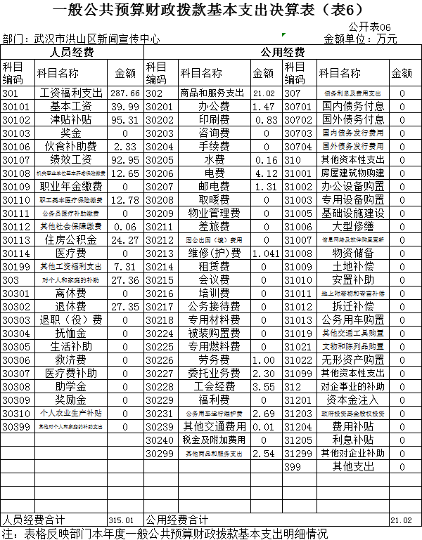六、一般公共预算财政拨款基本支出决算表(表6)