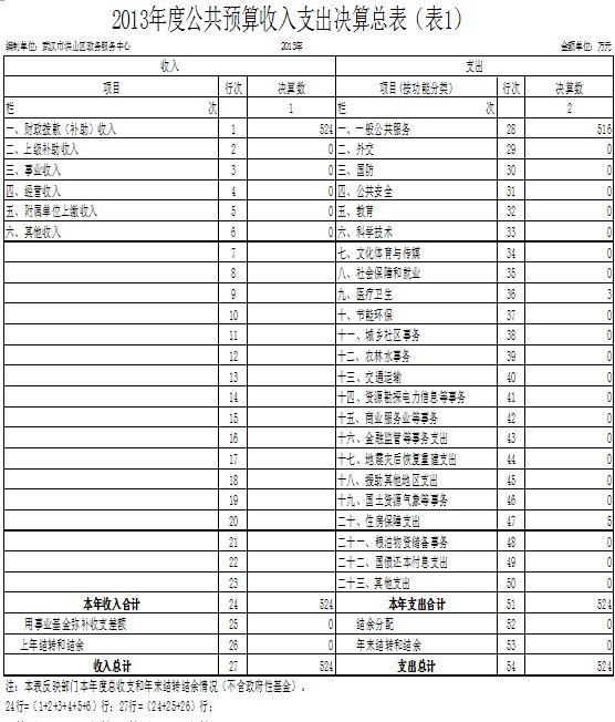 二、黄色网址 政务服务中心2013年度公共预算收入支出决算总表