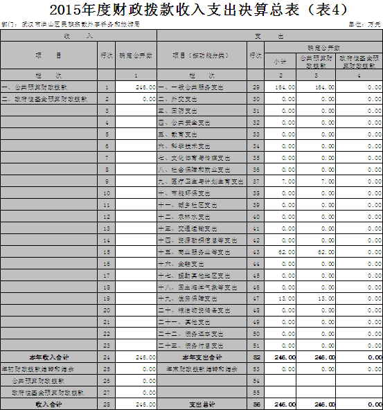 四、财政拨款收入支出决算总表(表4)