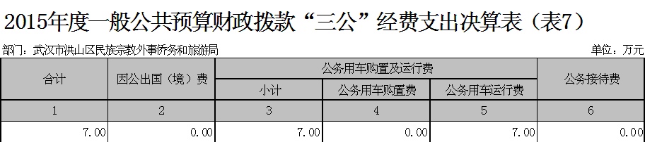 七、一般公共预算财政拨款“三公”经费支出决算表(表7)