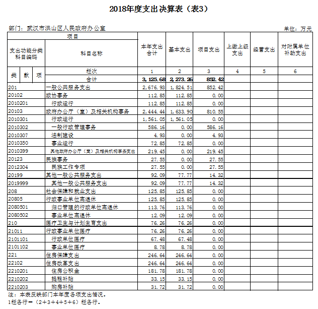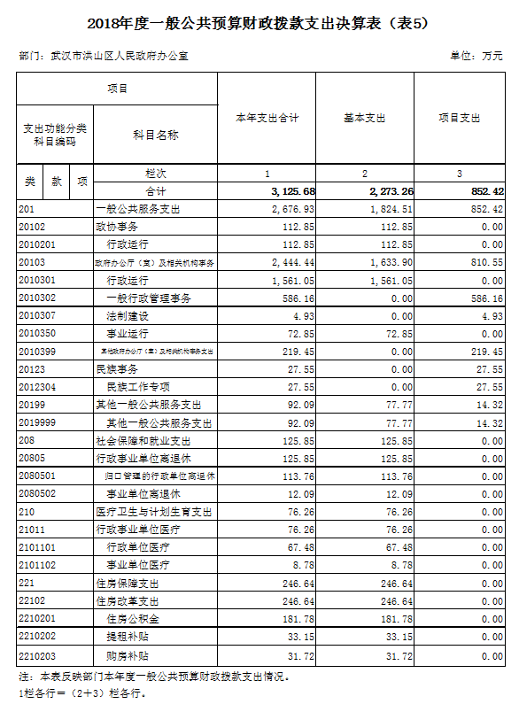1.一般公共服务(类) 政府办公厅(室)及相关机构事务(款) 行政运行(政府办公厅)(项):反映行政单位(包括实行公务员管理的事业单位)的基本支出。