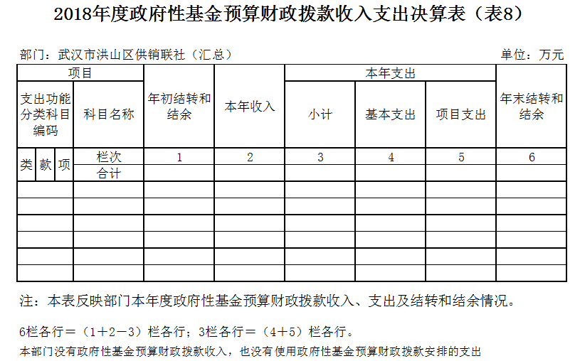 八、政府性基金预算财政拨款收入支出决算表(表8)