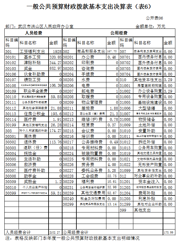 六、一般公共预算财政拨款基本支出决算表(表6)