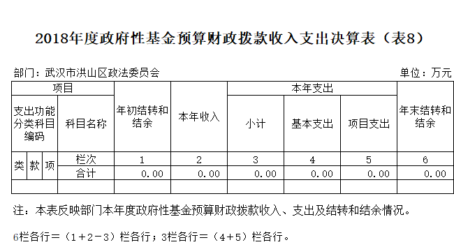 2018年政府性基金预算财政拨款上年结转和结余0.00万元,本年收入0.00‐万元,本年支出0.00‐万元,年末结转和结余0.00‐万元。