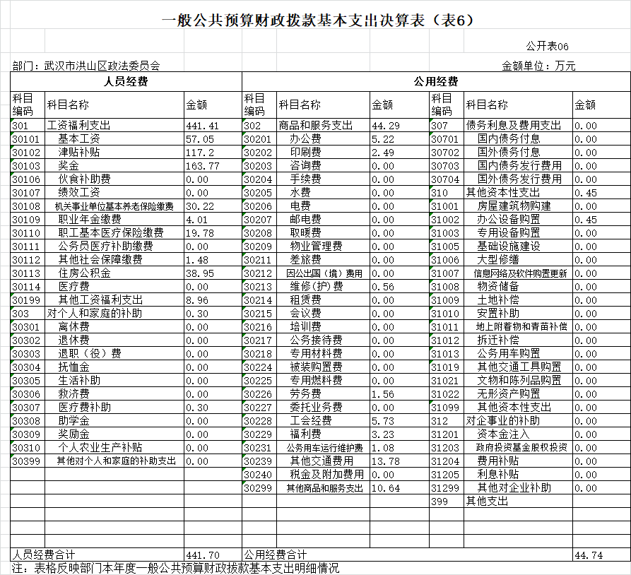 六、一般公共预算财政拨款基本支出决算表(表6)