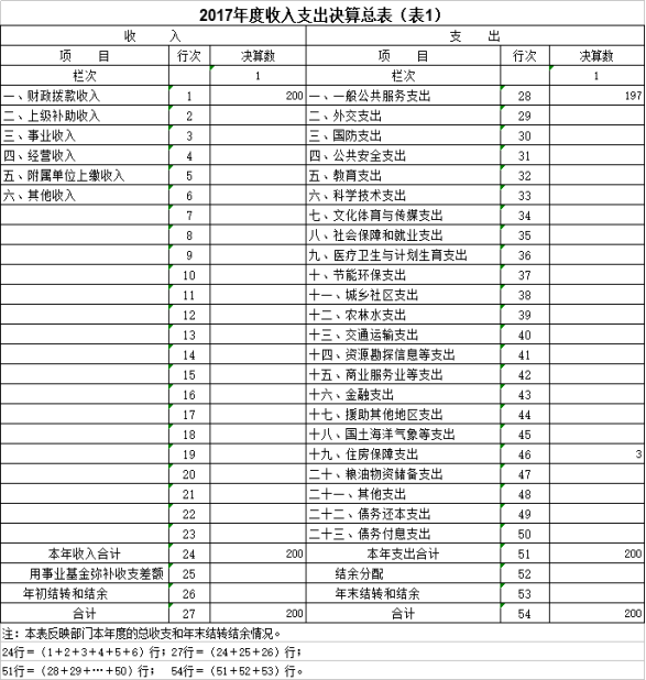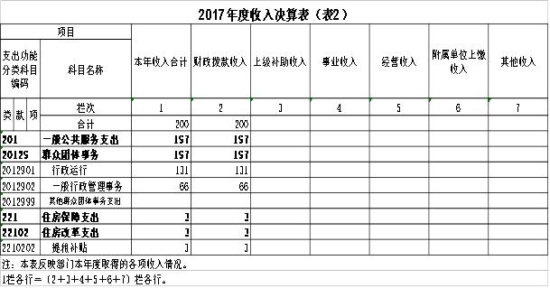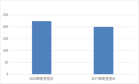2017年度收、支总计200万元。与2016年相比,收、支总计各减少24万元,降低10%,主要原因是取消劳模联谊会支出。