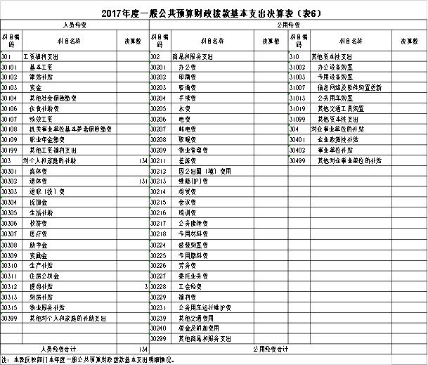 六、一般公共预算财政拨款基本支出决算表(表6)