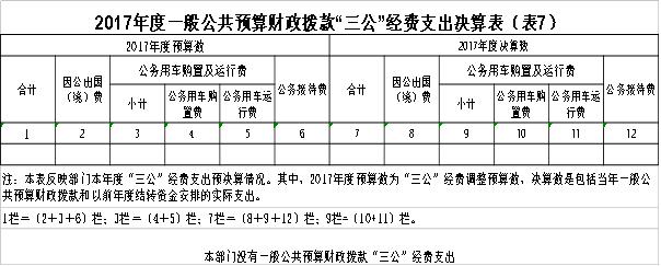 七、一般公共预算财政拨款“三公”经费支出决算表(表7)