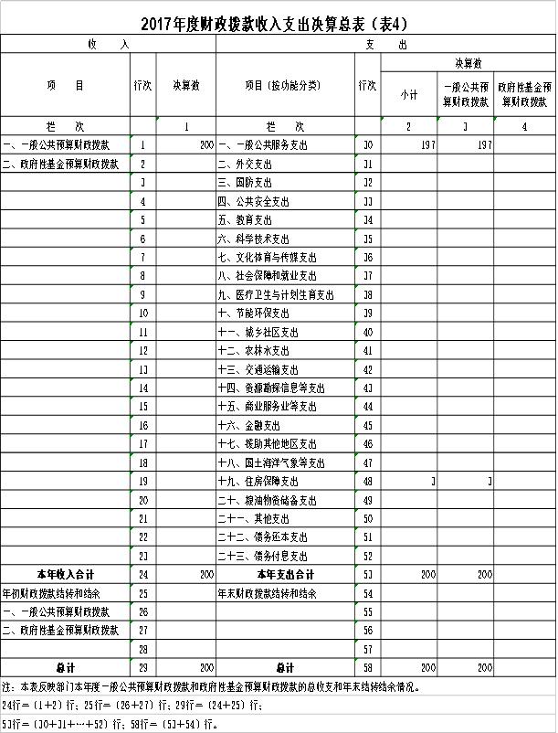 四、财政拨款收入支出决算总表(表4)