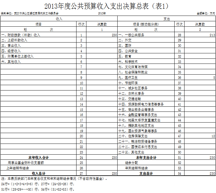 二、黄色网址 委区直属机关工作委员会2013年度公共预算收入支出决算总表