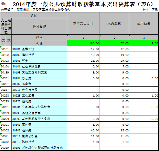 六、2014年度一般公共预算财政拨款基本支出决算表(表6)