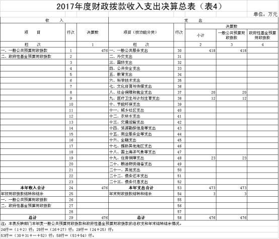 2017年度收、支总计476万元。与2016年相比,收、支总计各增加129万元,增长37.18%,主要原因是一是人员增加工资福利增加,二是项目业务支出增加。