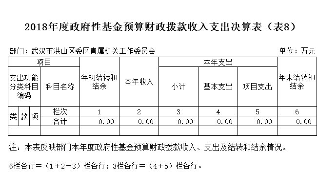 2018年政府性基金预算财政拨款上年结转和结余0.00万元,本年收入0.00‐万元,本年支出0.00‐万元,年末结转和结余0.00‐万元。