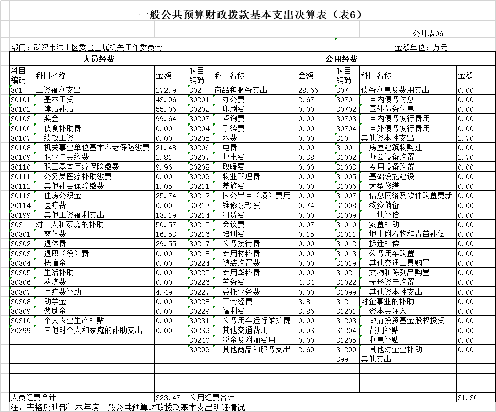 六、一般公共预算财政拨款基本支出决算表(表6)