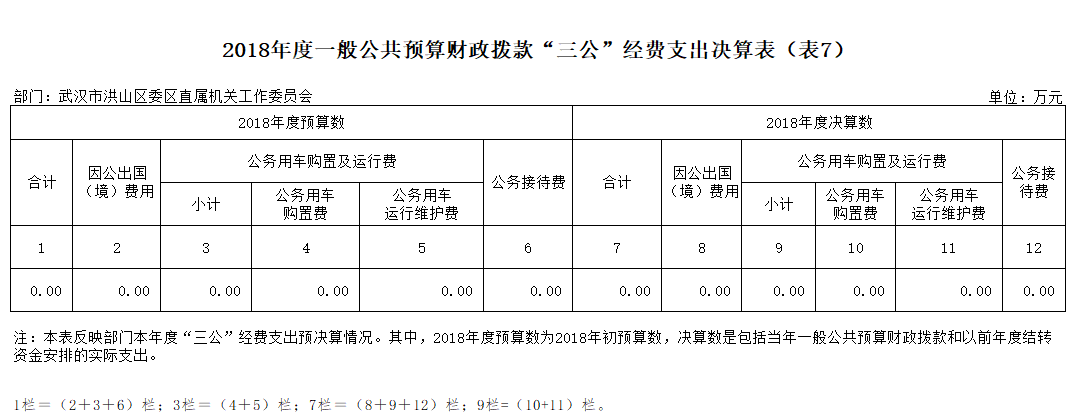 2018度“三公”经费财政拨款年度预算数为0万元,支出决算为0万元,为预算的0%,其中: