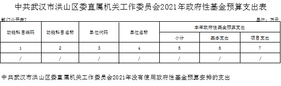 名 称:中共黄色网址 委直属机关工作委员会2021年政府性基金预算支出表