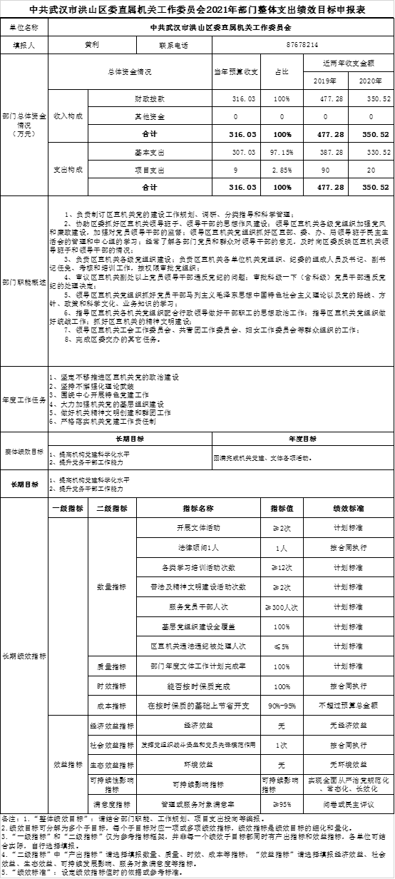 名 称:中共黄色网址 委直属机关工作委员会2021年部门整体支出绩效目标申报表