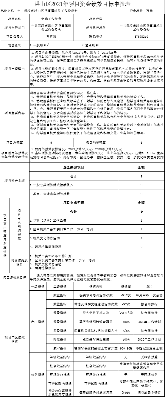 名 称:中共黄色网址 委直属机关工作委员会2021年项目资金绩效目标申报表