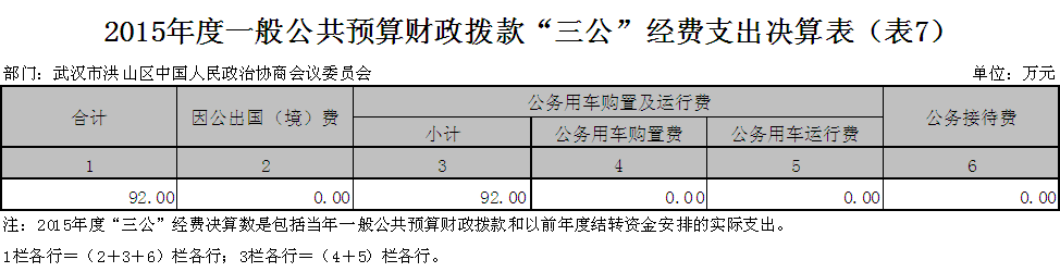 七、2015年度一般公共预算财政拨款“三公”经费支出决算表(表7)