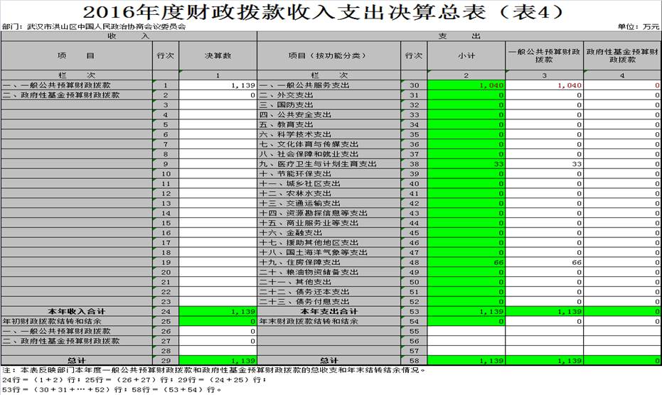 四、财政拨款收入支出决算总表(表4)