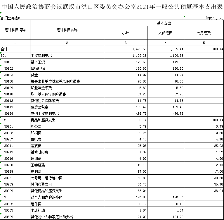 名 称:中国人民政治协商会议黄色网址 委员会办公室2021年一般公共预算基本支出表