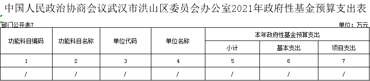 名 称:中国人民政治协商会议黄色网址 委员会办公室2021年政府性基金预算支出表