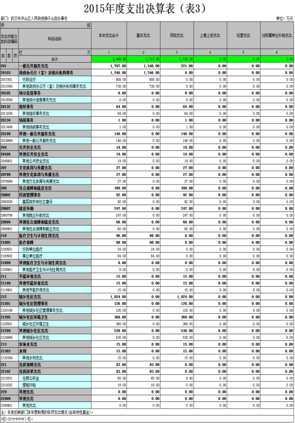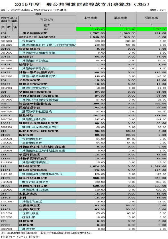 黄色网址 狮子山街办事处2015年度本年支出合计 3445万元。其中:基本支出 1717万元,占本年支出49.84 %,项目支出 1728万元,占本年支出50.16 %。