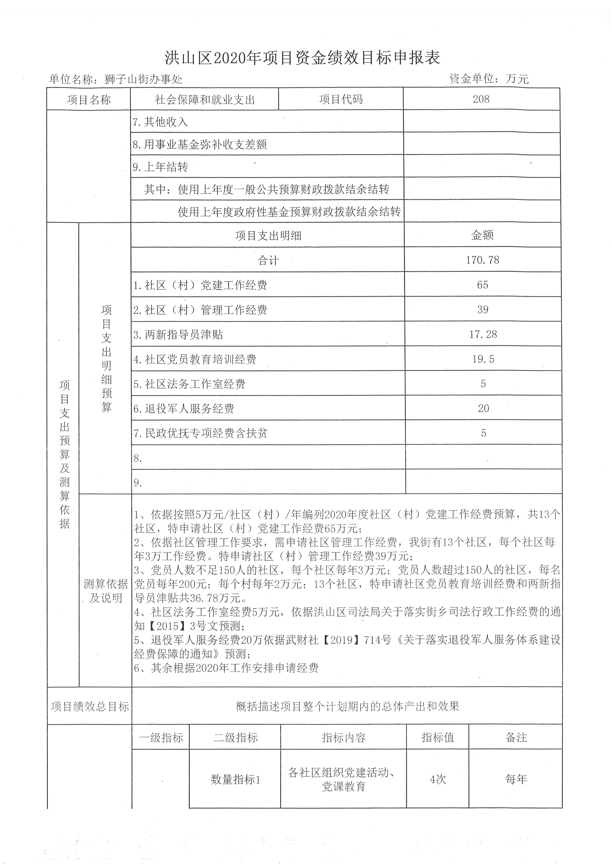 名 称:狮子山街办事处2020年目标绩效表十一