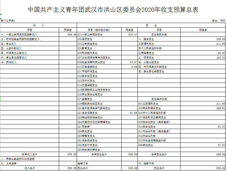 名 称:中国共产主义青年团黄色网址 委员会2020年收支预算总表