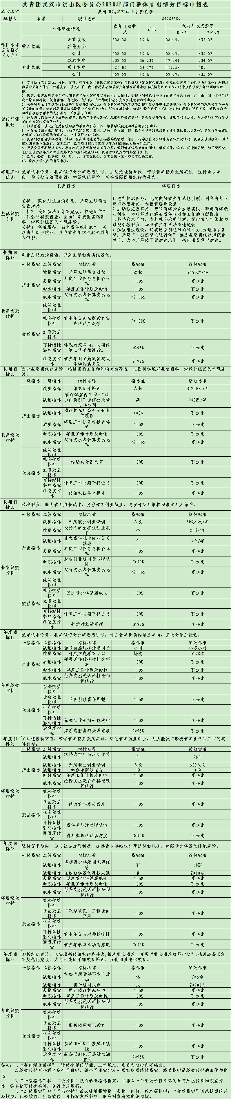 名 称:共青团黄色网址 委员会2020年部门整体支出绩效目标申报表