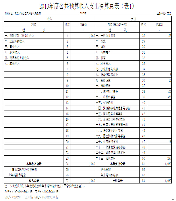 二、黄色网址 天兴乡人民政府2013年度公共预算收入支出决算总表