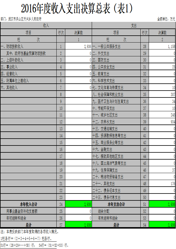 名       称:2016年度黄色网址 天兴乡人民政府部门决算