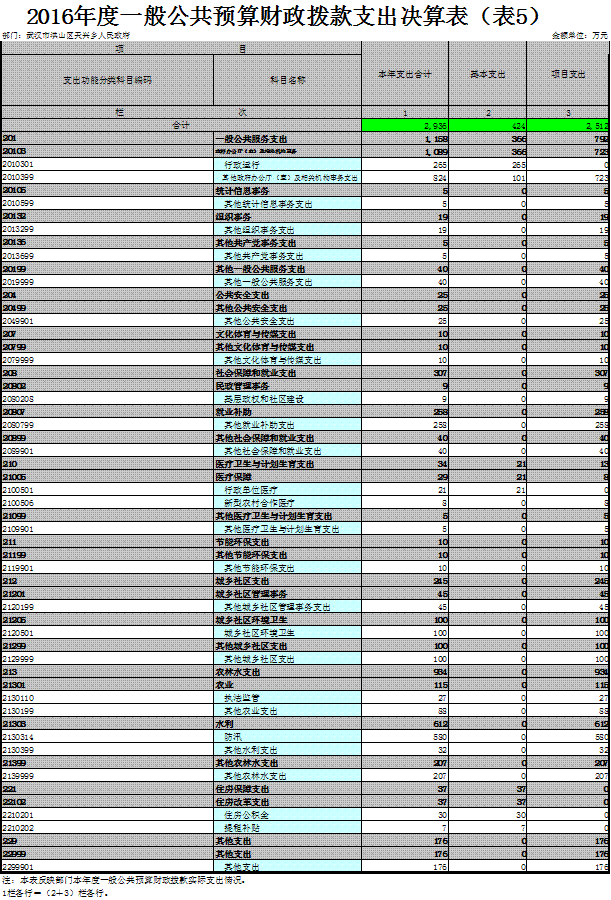 五、一般公共预算财政拨款支出决算表(表5)