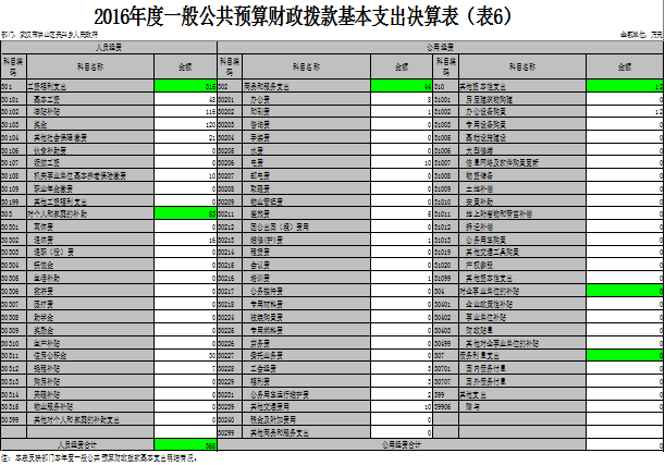 六、一般公共预算财政拨款基本支出决算表(表6)