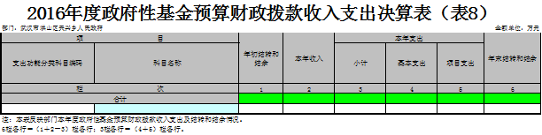 八、政府性基金预算财政拨款收入支出决算表(表8)