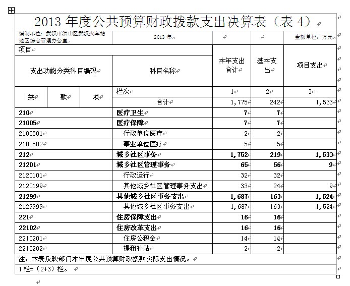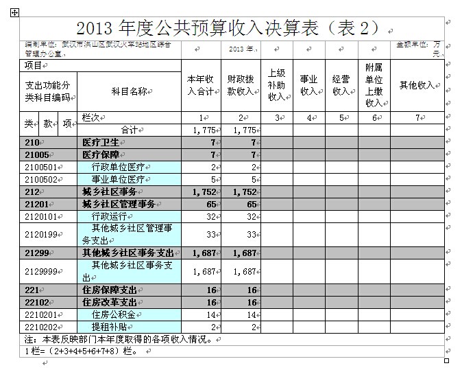 二、黄色网址 武汉火车站地区综合管理办公室2013年度公共预算收入支出决算总表
