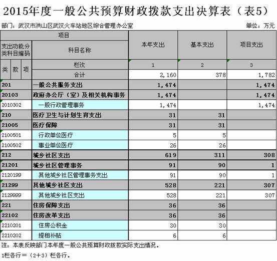 黄色网址 武汉火车站地区综合管理办公室2015年度部门决算情况说明