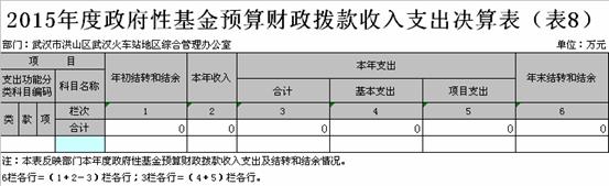 说明:黄色网址 武汉火车站地区综合管理办公室2015年没有政府性基金收入,也没有使用政府性基金安排的支出。