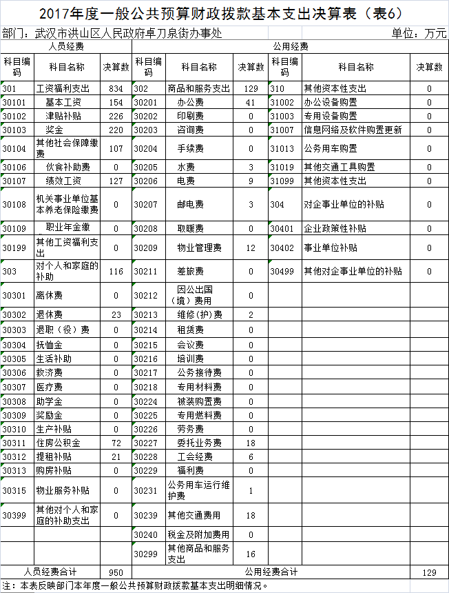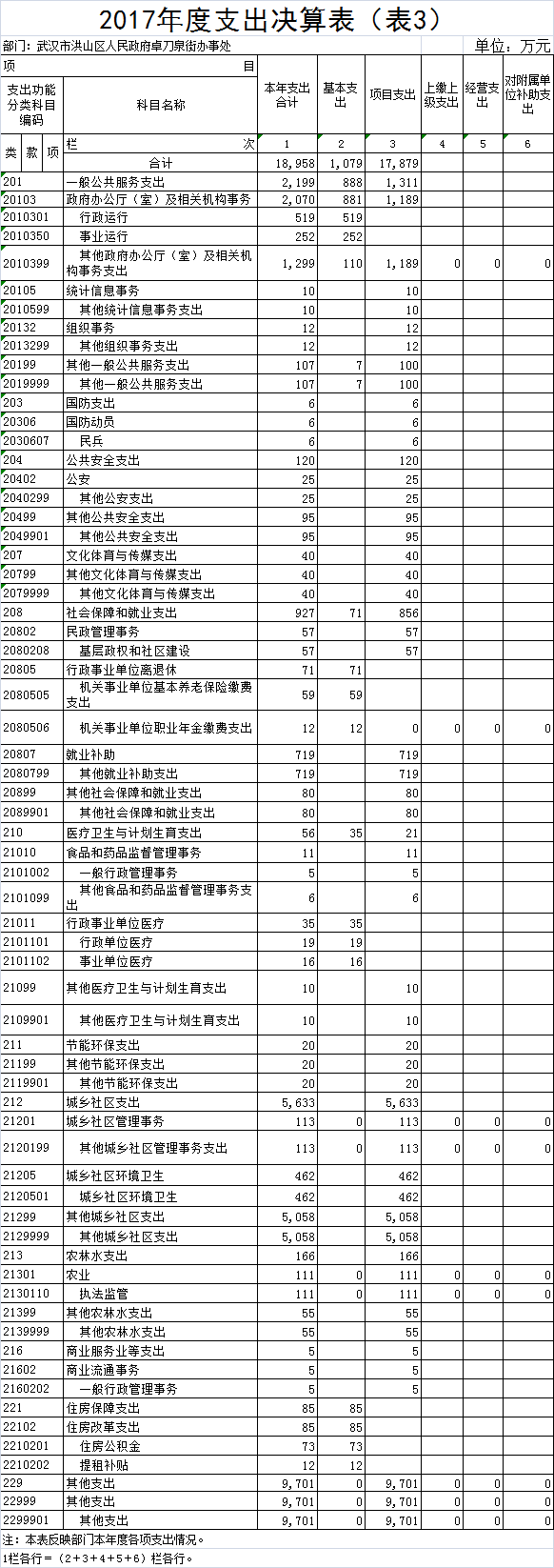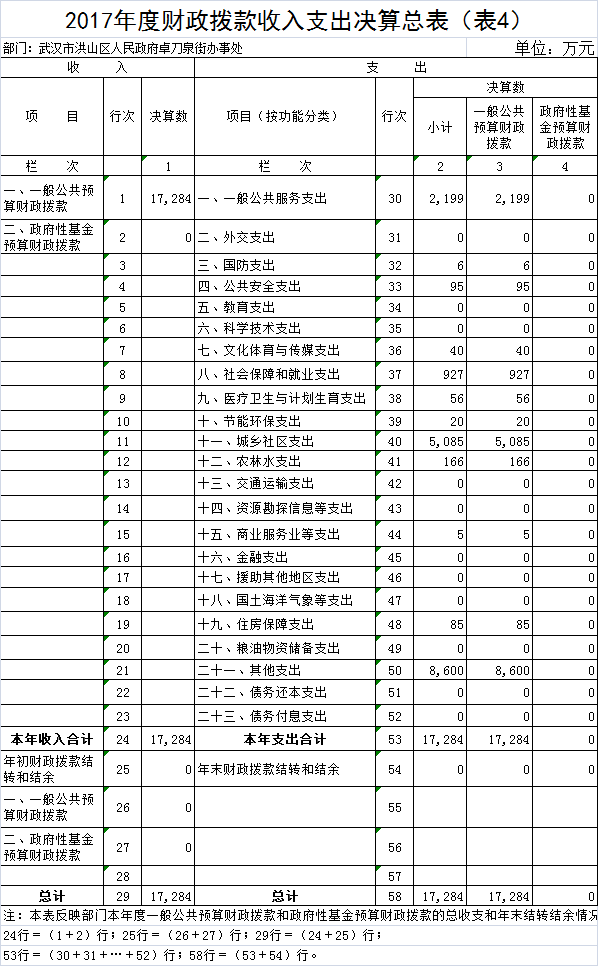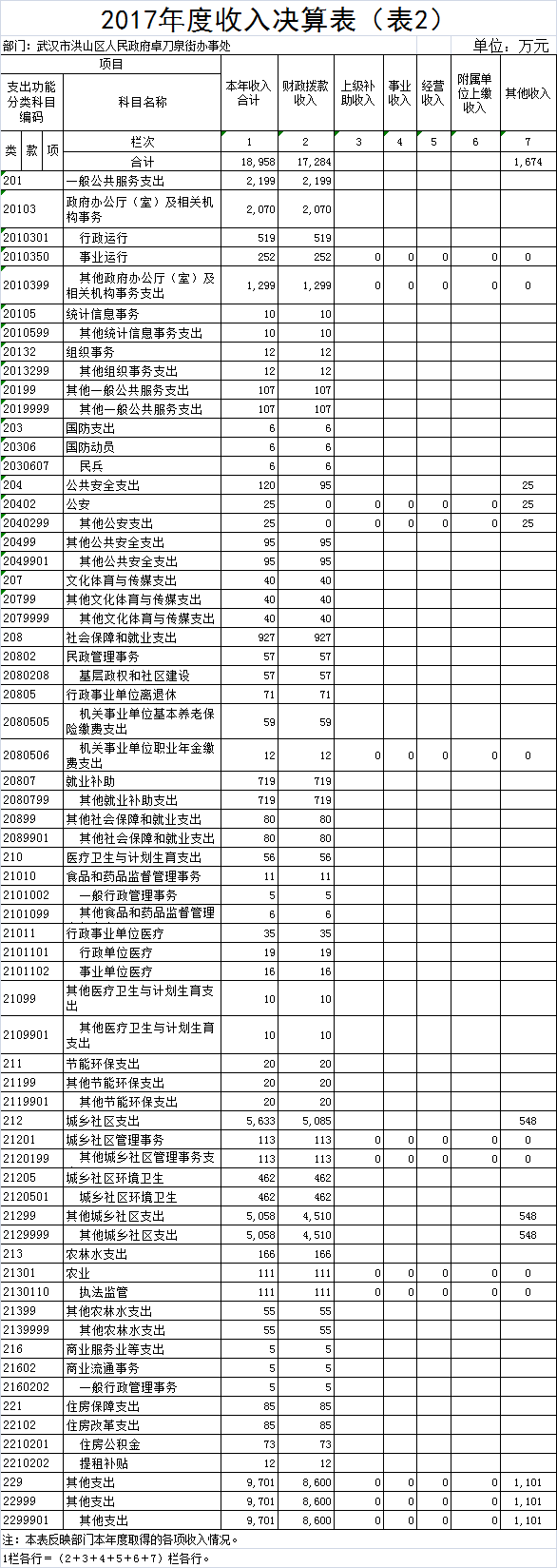 名       称:2017年度黄色网址 卓刀泉街办事处部门决算