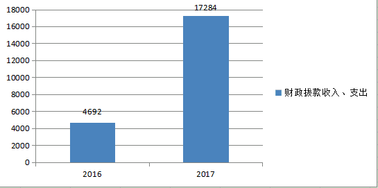 2017年度财政拨款收、支总计17,284万元。与2016年相比,财政拨款收、支总计各增加12,592万元,增长268.37%。主要原因是人员支出调整,养老保险与职业年金缴纳,紫菘工业园房屋腾退经费增加。