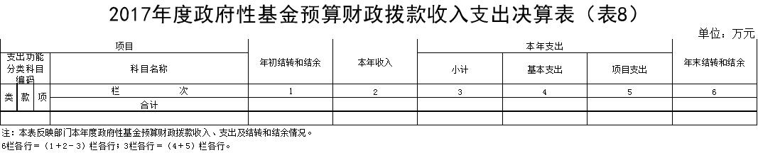 八、政府性基金预算财政拨款收入支出决算表(表8)