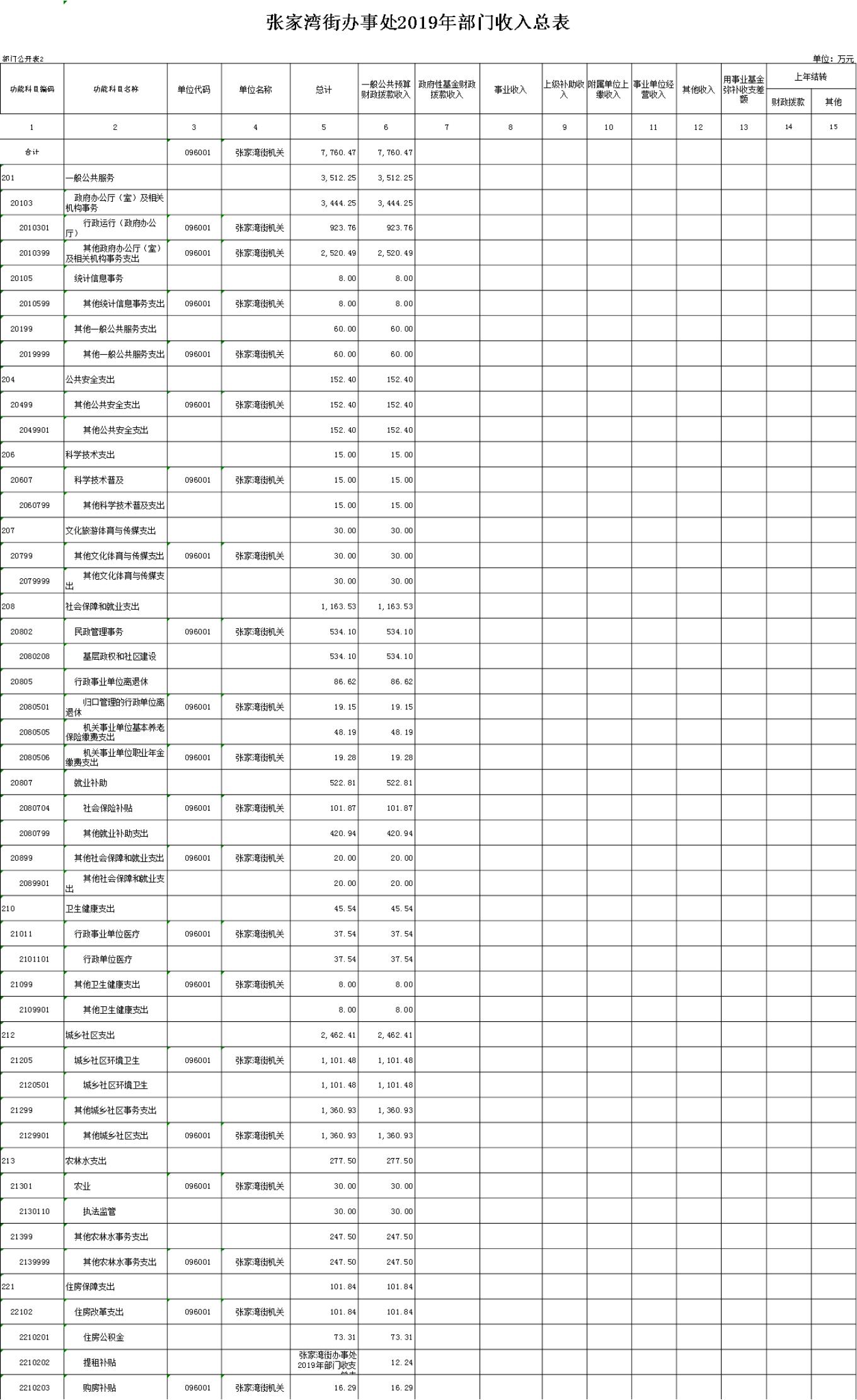 名 称:张家湾街办事处2019年部门收入总表