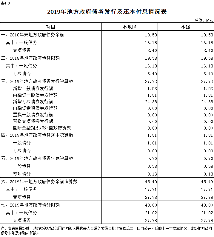 名 称:2019年度黄色网址 地方政府债务发行及还本付息情况表