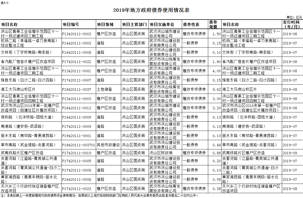 名 称:2019年度黄色网址 地方政府债券使用情况表