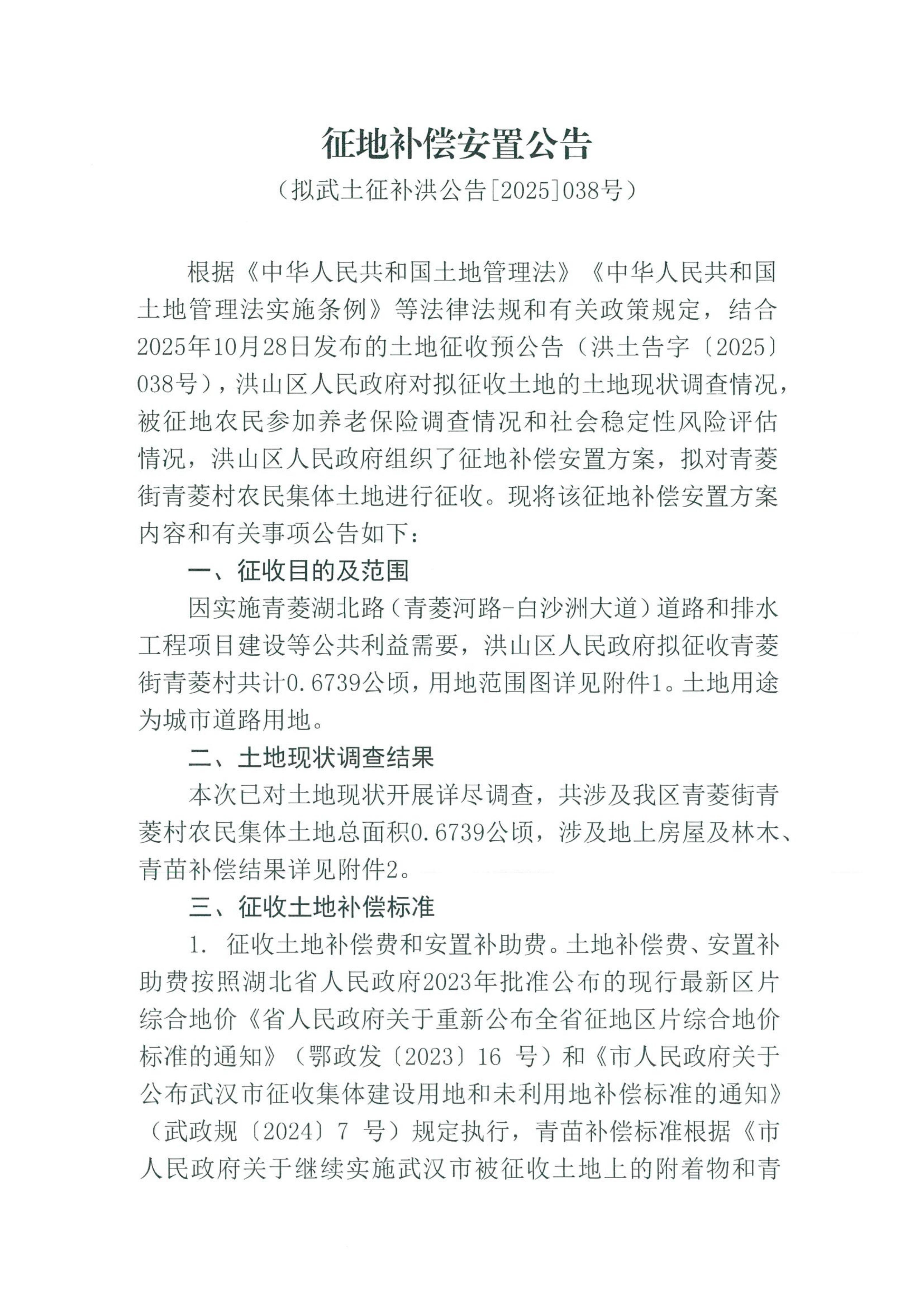 标     题 拟武土征补洪公告[2025]038号征地补偿安置方案公告