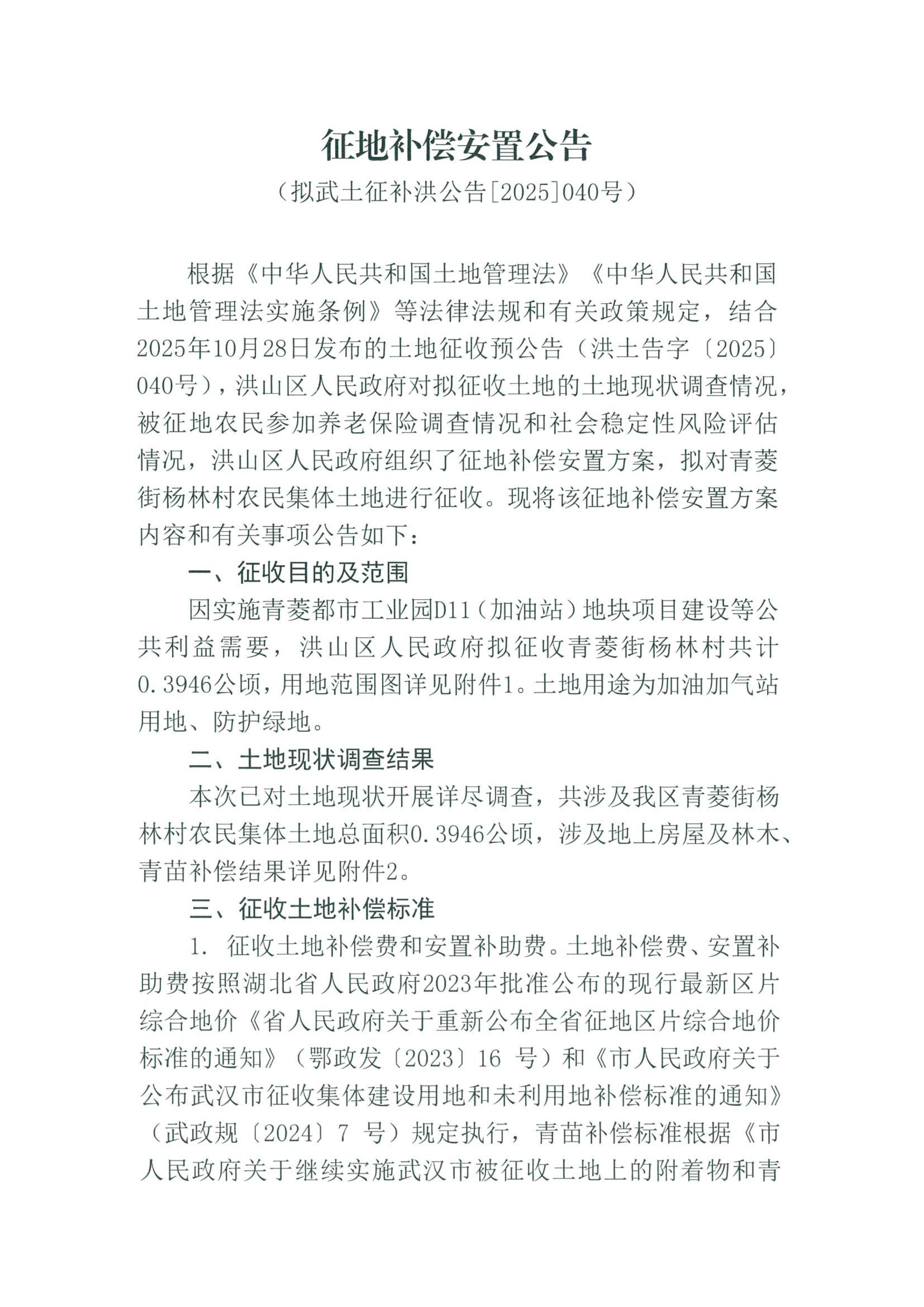 标     题 拟武土征补洪公告[2025]040号征地补偿安置方案公告