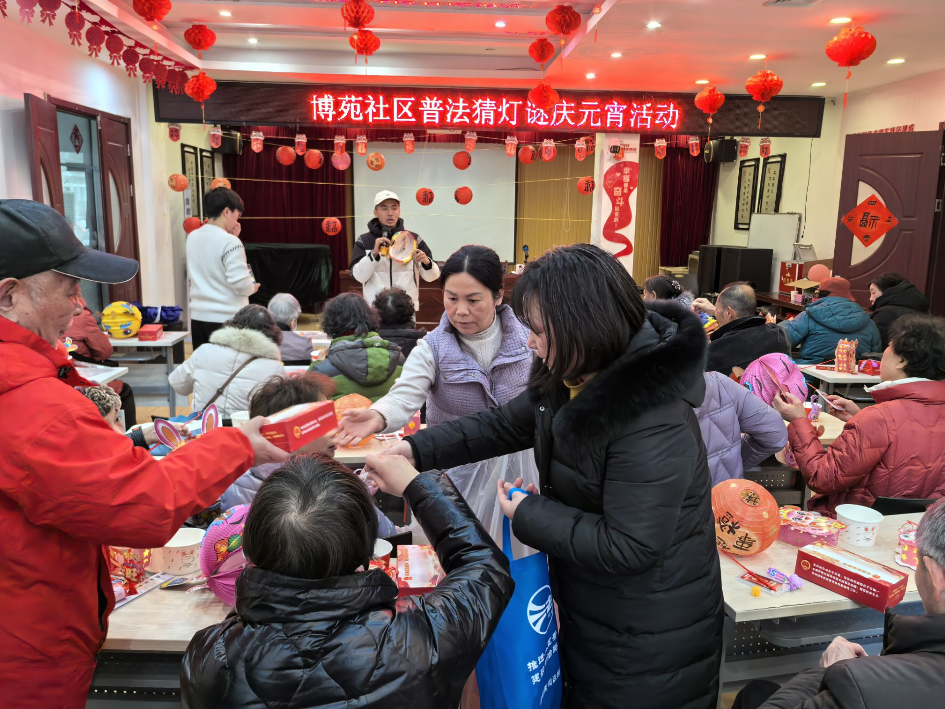 2月8日,珞南司法所联合博苑社区开展“新时代法治站”欢乐庆元宵主题活动,社区“法律明白人”将元宵节传统活动与法律知识相结合,向大家发放法律宣传彩页、普法钥匙扣、普法抽纸等小礼品,宣传宪法、民法典以及防范电信诈骗和反邪教等方面的法律法规知识,社区小记者们还制作了手工灯笼。现场气氛热烈,居民纷纷表示收获颇丰,要把这份“元宵礼物”带回家分享给亲朋好友。