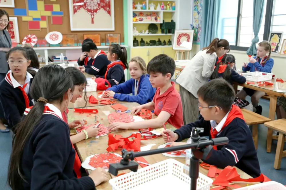 随后的传统文化体验课上,英国学生被分为两组开展书法与剪纸学习:书法课上,横竖撇捺间满是中国传统文化的端庄与飘逸;剪纸课中,镂空造型里藏着民间艺术的精巧与灵动。