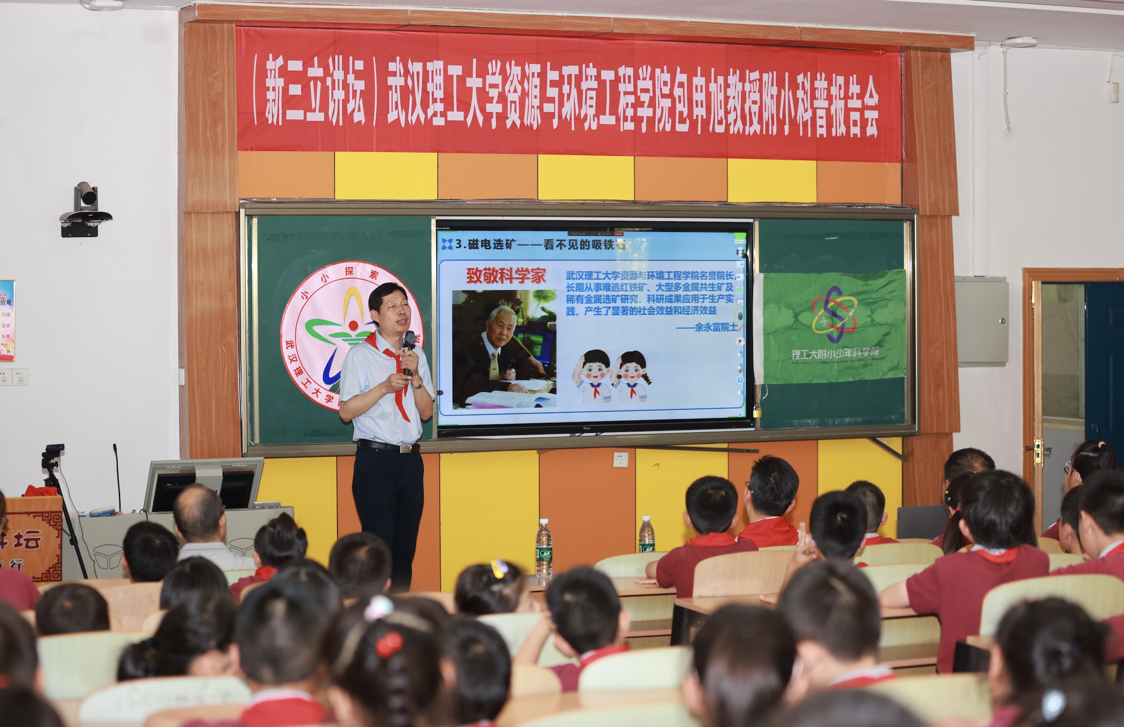 活动伊始,新三立讲坛开启。武汉理工大学教授包申旭带来“神奇的元素之旅——从矿石到日常生活”讲座,围绕矿石提纯、冶炼等讲解,以案例激发学生科学好奇心与环保意识。